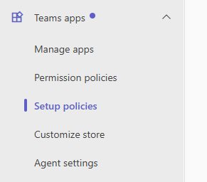 - In the Teams Admin Center, navigate to: Teams apps -> Setup policies.