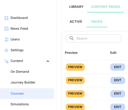 - Navigate to Content -> Course -> Content Packs -> Packs